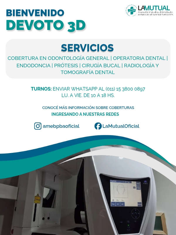 Te informamos que La Mutual ha incorporado de forma directa al prestador odontológico Devoto 3D, para cubrir la atención de todos los afiliados de la zona de Villa Devoto y alrededores. Encontrá toda la información aquí.
