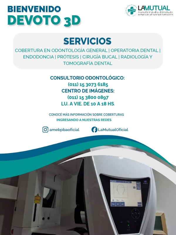 Te informamos que La Mutual ha incorporado de forma directa al prestador odontológico Devoto 3D, para cubrir la atención de todos los afiliados de la zona de Villa Devoto y alrededores. Encontrá toda la información aquí.