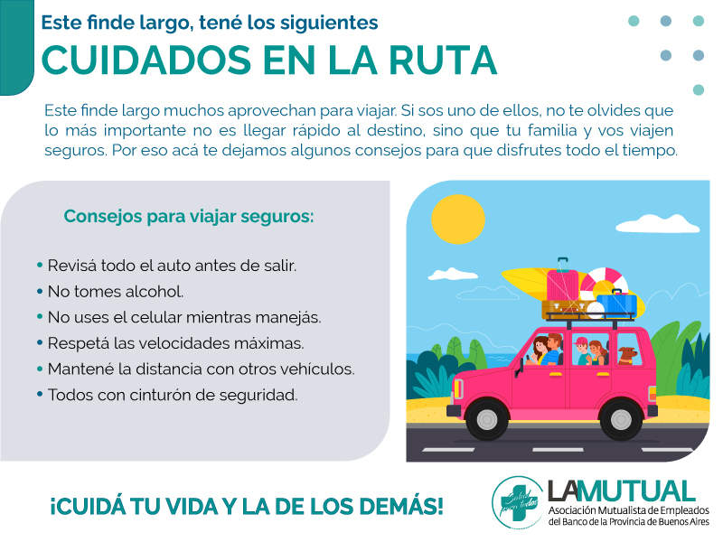 Si este fin de semana largo estás pensando en realizar un viaje en auto, tené en cuenta algunas recomendaciones para disfrutar de un viaje seguro. ¡Cuidá a los tuyos y a los demás!