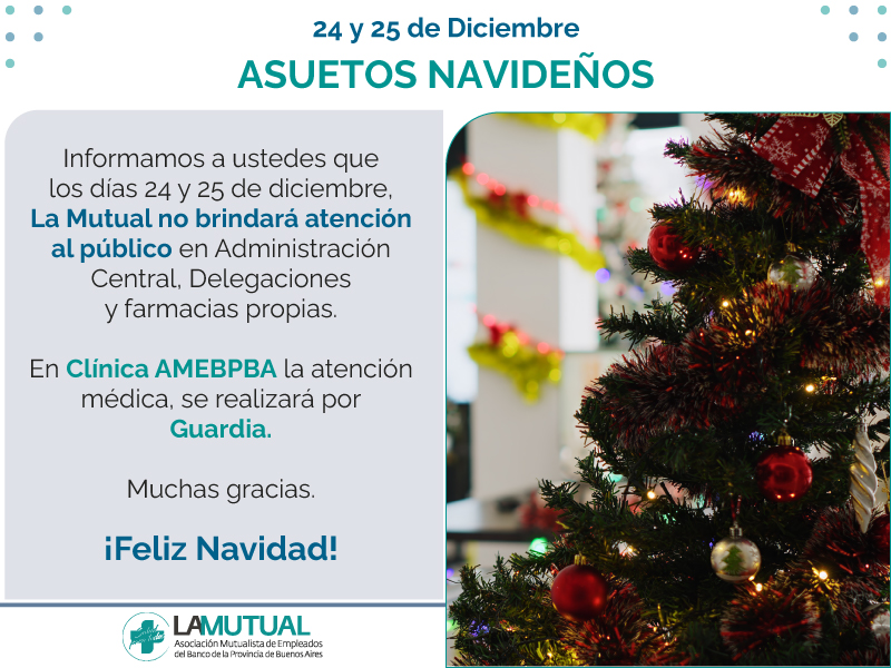 El 24 y 25 de diciembre no habrá atención en Administración Central, Delegaciones ni farmacias propias.